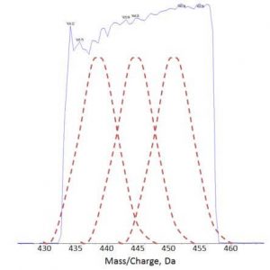 Technically we had to overcome the time taken to accumulate ions for each mass so that it could “fit” with the LC-time scale allowing quantitation. This tradeoff between accumulation time and peak width limited the MS/MSALL scan to essentially an infusion technique. In overcoming this, we first had to isolate a wider mass range in the quadrupole. However normally at this time, the isolation efficiency diminished as you moved to the edges which caused reductions in the signal and limited the quantitation ability (red dotted lines in fig). The ability to generate square quadrupole isolation windows of wider width was a result of the work of our R&D team. The redeveloping of the electronic control of quadrupoles and also developing the mathematics to allow for the control resulted in increased resolution of the isolation boundaries and squarer isolation width – both critical for the quant (blue line in fig).