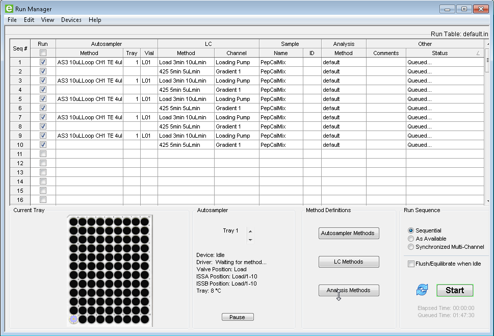 SCIEX OS software can support external devices that are not under direct control by using contact closure. Contact closure enables synchronization of the SCIEX OS software controlled device (the MS) and the external device (the LC in this case), ensuring that experimental batches can be generated and run on the two devices with appropriate timing. For example, a sample batch can be developed in SCIEX OS software for MS acquisition, and then the same sample batch can be replicated on an external LC device with the desired methods and autosampler settings. With contact closure in place, acquisition of mass spectra will be triggered upon the start of the LC gradient method on the external device. This post will explain how to use contact closure to synchronize a NanoLC 425 system for nanoflow and microflow chromatography with a mass spectrometer controlled by SCIEX OS software.