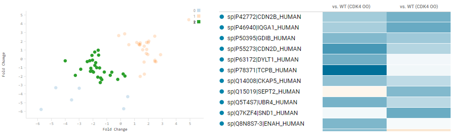 Finding interesting and significant changes across a biological dataset can be challenging, so having good algorithms that can mine large datasets for differences, and find the statistically significant changes is really important. Within the MarkerView App we have two different options, principal component analysis (PCA) with principal component variable grouping (PCVG) and K-means clustering. PCA-PCVG finds patterns or trends in the data, while K-means finds Euclidean clusters in the data.
